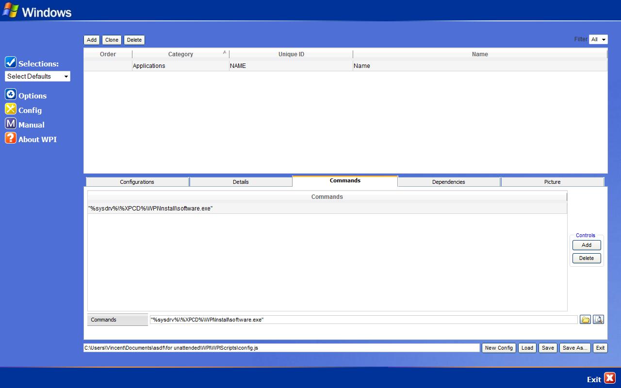 • Kemudian pada tab Commands, klik Add dan klik Open masukan aplikasi yang akan dimasukkan. Jika ingin terinstall secara silent, klik tombol yang ada di sebelah Open. Klik Save jika sudah. Lakukan berungkali dengan software yang lainnya yang ingin anda masukkan. Klik Exit jika anda sudah selesai memasukkan software.